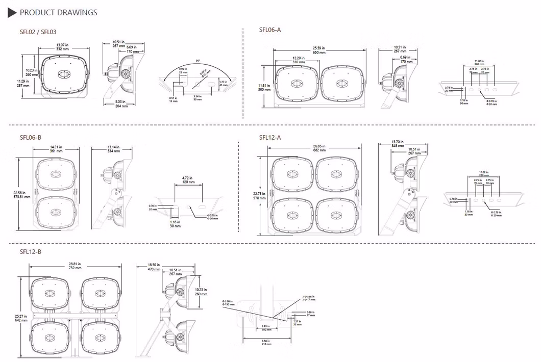 Con la luz seriada LED 3R-SFL, podemos unir 2-4 unidades en una luz de estadio de mayor potencia, y cada unidad puede ajustarse ángulos izquierda/derecha, arriba/abajo independientemente con nuestros accesorios.